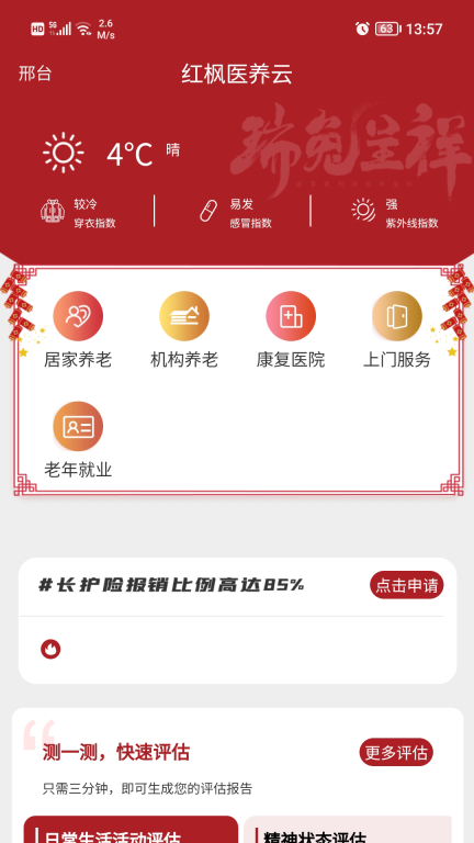 红枫医养云是一款专门面向老年人打造的线上一体化智慧医养服务软件。它融合了国内外先进的养老理念,设置了丰富多元的服务板块,旨在搭建一个中小型养老服务综合体系统,助力老年人在体验智慧医疗便捷性的同时,也能享受到周到暖心的养老服务。