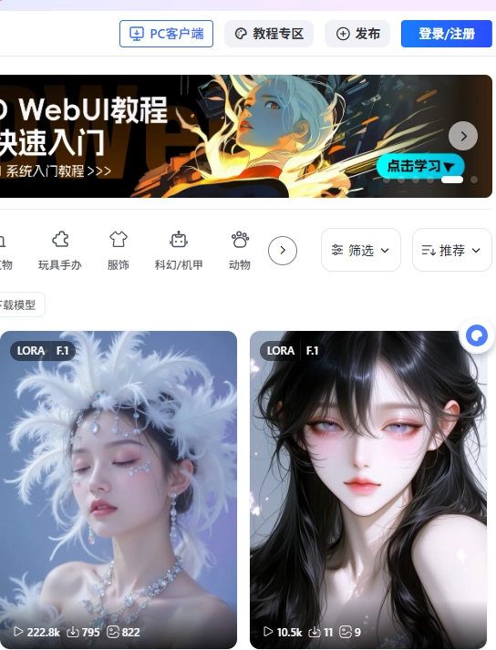 集成10万+原创AI模型,涵盖虚拟摄影、插画、建筑设计等多元领域。
