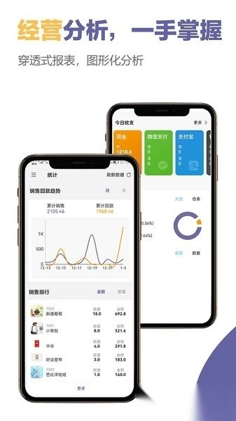 4.记账功能完善:支持自定义财务科目,管理应收应付账款与往来核销,记录店铺日常收支,统计门店财务情况,核算销售日报与利润,让账务细节清晰呈现。