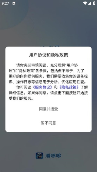 1、软件安装完成后打开,会弹出用户协议与隐私政策的提示,此时点击同意即可。