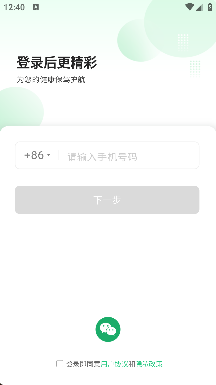 2. 输入您的手机号码后点击下一步,就能快速完成登录并开始使用相关功能。