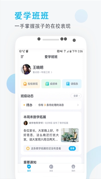 成绩单和课堂评价:查看老师发布的成绩单和孩子在校的生活学习状态;