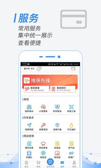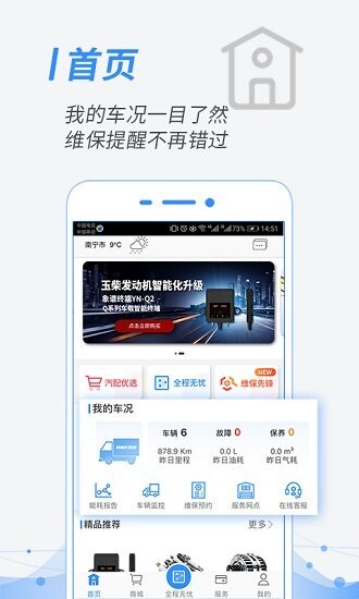 行程报告、油耗报告、驾驶行为分析、故障提醒(上述功能需搭配翌能车载终端使用)、保养提醒等。
