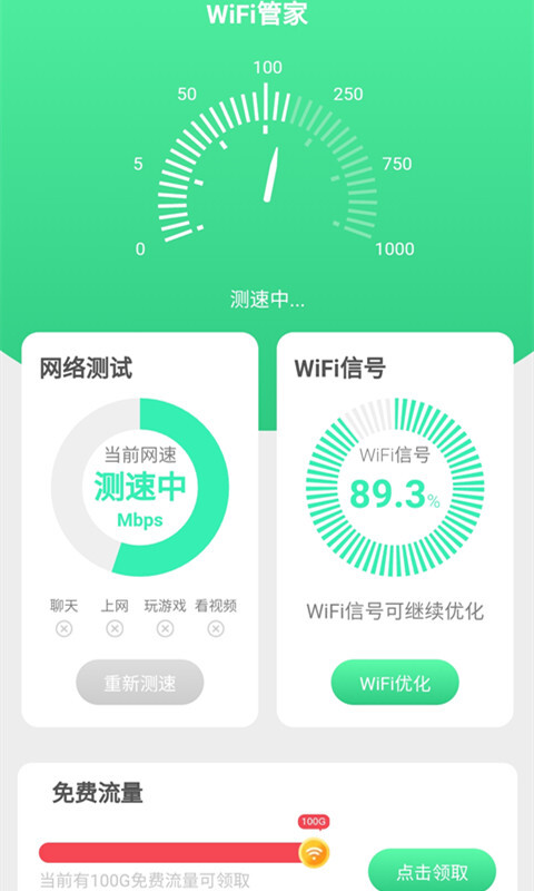 2.连接网络后,它可以帮你测试网络速度。要是测出的速度符合你的预期,你就能直接使用这个网络,同时它还具备手机加速的功能。