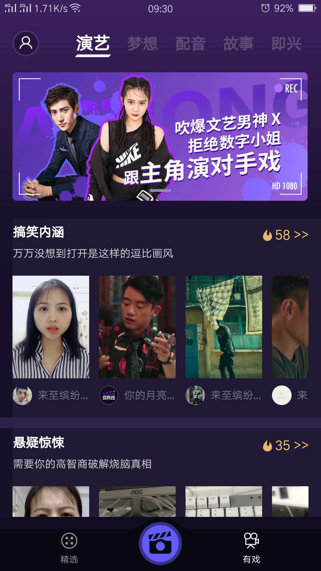 你有戏是一款充满趣味的短视频应用,用户可以在平台上轻松实现自己的演员梦想,这里有各类经典的电影片段,供你