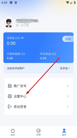 2、在“我的”页面,点击“设置中心”选项,进入账号相关的设置界面。