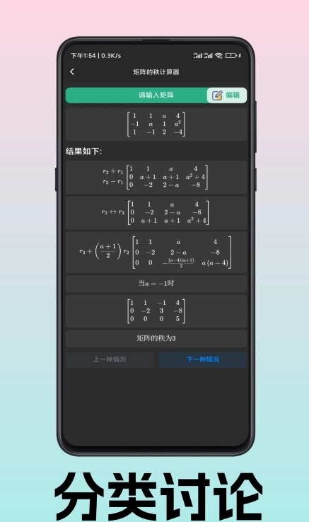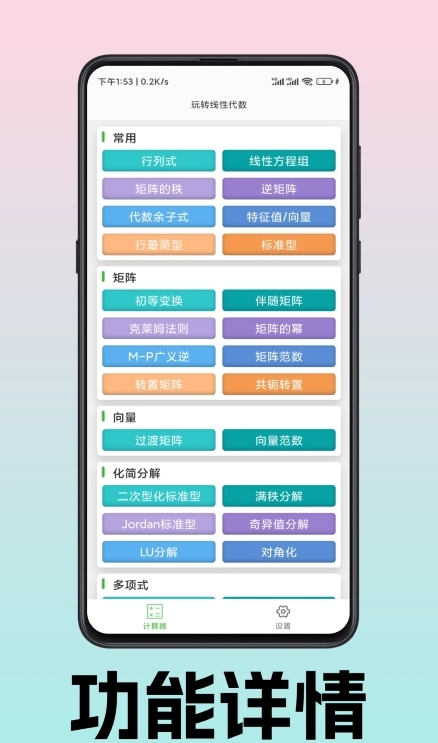 玩转线性代数能够帮助用户轻松解决线性代数中的各种问题。软件提供了丰富的功能,包括矩阵运算、行列式计算、特征值和特征向量求解等。软件采用了先进的算法,能够在短时间内完成大量计算,大大提高了用户的工作效率。同时支持多种输入方式,包括键盘输入、手写输入和语音输入,满足不同用户的需求。