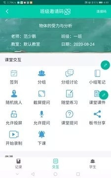 睿课教是一款通过丰富多样的课堂教学应用,实现快速考勤、课堂互动、小组讨论、课堂记录、学情分析等功能的课堂交互工具。