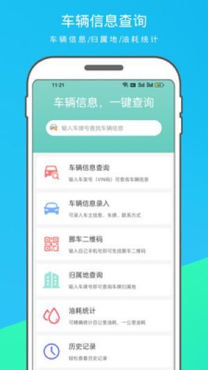 3.查询车辆信息:进入“车辆详情”页面后,可查看油耗、车型、维修记录等内容,便于掌握车辆的具体状况。