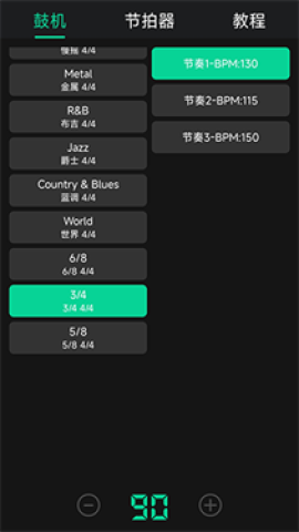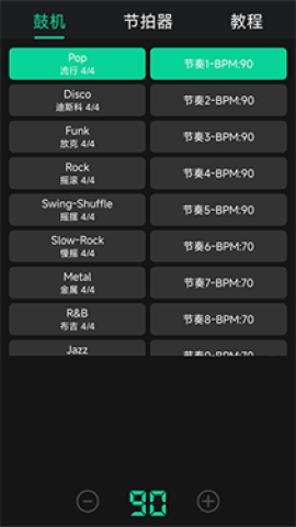 1、快速鼓机节拍器数百种鼓组节奏,能充分满足您在节奏方面的各类需求。