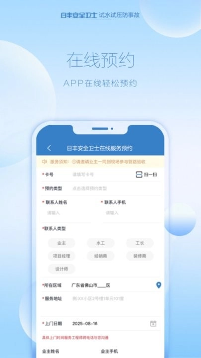 便捷的线上预约工程师上门模式,在应用中就能编辑信息提交预约,简单方便;