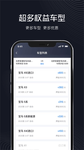 1、超多权益车型在线选择,不同车型的租用费用不同,超多优惠在线享受,让用户更好的选择车辆使用。