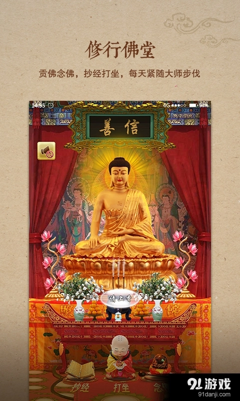 3.用户体验:善信通过智能技术和精美的ui界面,为用户提供了真实、深入的修行体验,让用户在体验中华传统文化的同时,也能感受到科技带来的便利和乐趣。
