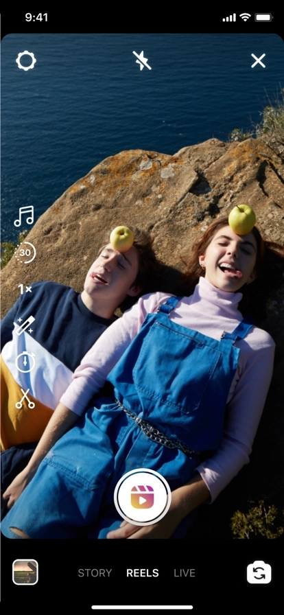 若要使用Instagram应用制作快拍,并将其分享给特别关注列表中的用户: