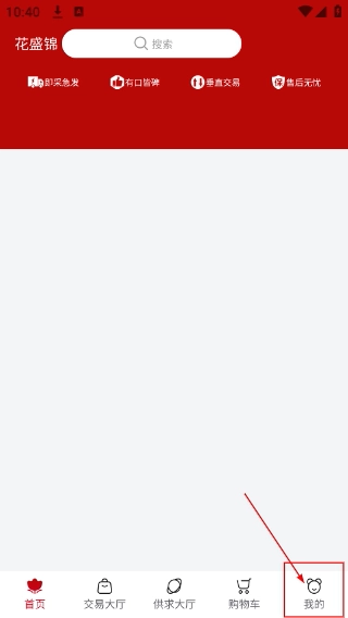 1、进入“花盛锦”首页,点击底部导航栏的【我的】按钮,进入个人中心页面。
