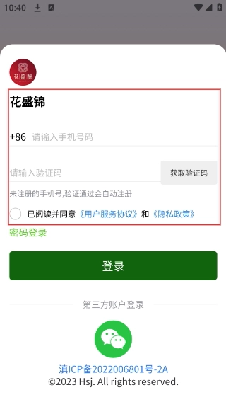 3、登录界面默认显示验证码登录方式:填写手机号,点击【获取验证码】并输入收到的验证码,点击【登录】。
