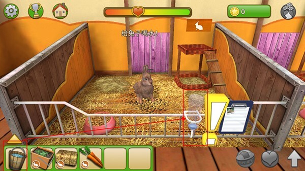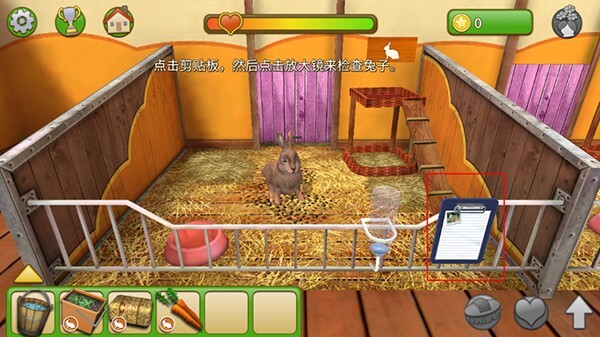 3、点击剪贴板,用放大镜检查兔子,等所有指标都变成绿色,宠物就会感到幸福美满。