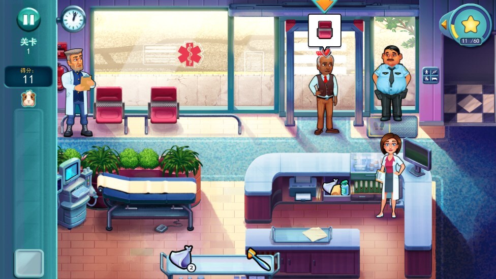 快速分配患者能让您的分数获得额外奖励。快速治疗患者会为您的患者增加额外的心。您可以通过快速完成动作来赢得更多奖励!