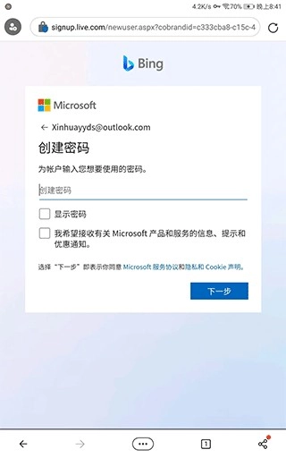 邮箱地址:用户名部分必须以英文字母开头(如user123),后缀为@outlook.com。