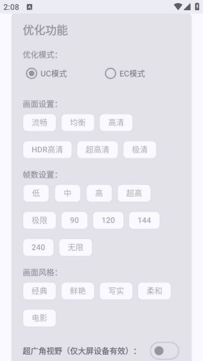 2、独有EC/UC双模式切换,适配不同机型,解决卡屏、闪退、掉帧等顽疾。