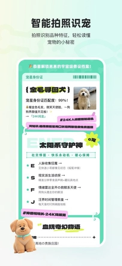 软件能够对不同的宠物进行识别,能够快速识别宠物品种和性格特征。
