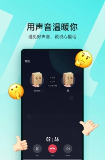 “温暖有趣的心灵社交”,获得“腾讯星”,“至美应用”,“极光奖”推荐。数千万年轻用户在此,无顾虑的诉说心情,遇见爱情。很多人因此成为了朋友,男女朋友,甚至夫妻。时下超火的弱关系社交,通过完成30秒的“灵魂测试”,来找到心灵相通的小伙伴。
