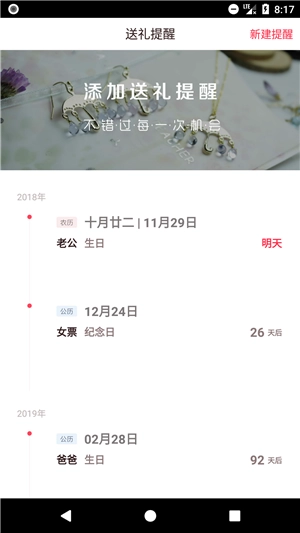 按日期排序,按年份分组,方便快捷查看送礼提醒。