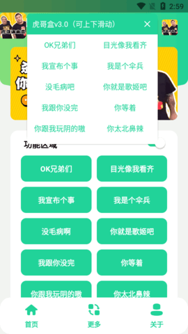 1、汇集了众多虎哥的经典语录,随时可以播放来恶搞自己的朋友。无论是聚会、游戏还是日常聊天,这些语录都能为你的互动增添趣味性,让你成为朋友圈中的搞笑担当。