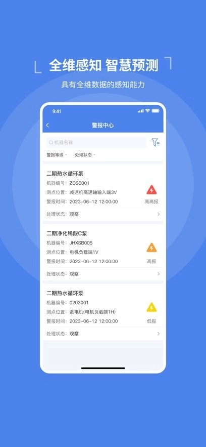 是做更专业、更懂机器的智能健康守护者,将各种机器设备的异常情况及时警报提醒,用户可以在第一时间处理警报。可以帮助用户对所有的机器设备进行高效管理,让各种机器设备的管理非常的高效便捷。