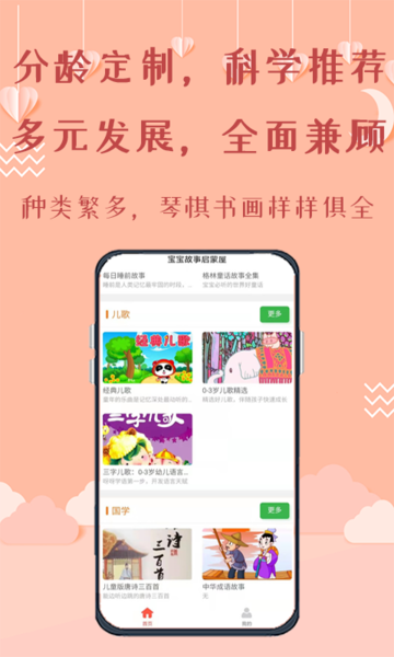 【精彩故事】这里有睡前故事、历史故事、神话传说等丰富多样的故事类型,海量的故事资源能让妈妈们拥有更多选择,方便她们在短时间内快速找到心仪的故事种类,妈妈们再也不用为挑选故事而费心耗时了。