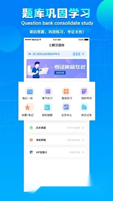七颗牙学堂软件最新版由河南七颗牙教育科技有限公司精心打造,专为备考口腔医师资格的用户提供在线培训支持。该平台汇集了大量优质视频课程,并邀请众多经验丰富的医师进行直播教学,所有课程均支持回看复习,致力于帮助学员系统提升专业水平与应试能力;喜欢的不妨在本站。