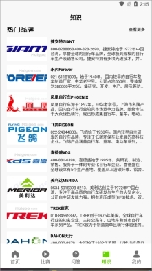 5、在知识之一界面可以看自行车的热门品牌都有哪些