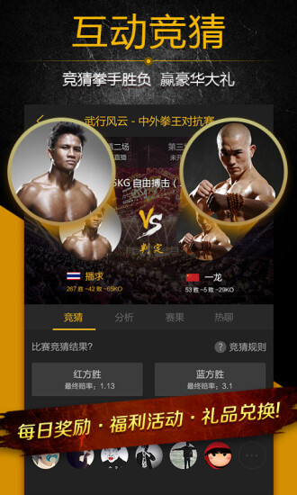 邀请用户融入其中,亲身感受全球顶尖搏击高手在赛场上激烈角逐的热血氛围。