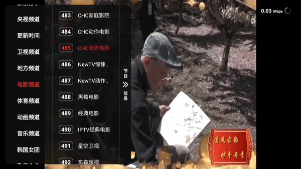3、最后还能点击播放屏幕,调出菜单切换其他频道来观看。