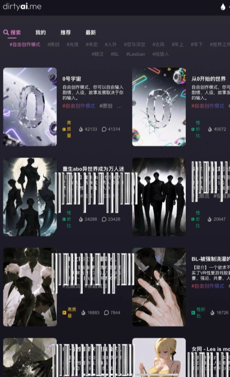 得体AI(dirtyai.me)是一款ai互动聊天神器,里面预设了多种题材角色,支持谷歌、苹果以及邮箱登录,可以自由自定义oc角色,从外观到性格背景都能自己定,相当于拥有专属AI伙伴,聊多久都不腻。得体AI顶部可以根据关键字来搜索,也可以按推荐和最新角色来选择自己的ai虚拟角色。