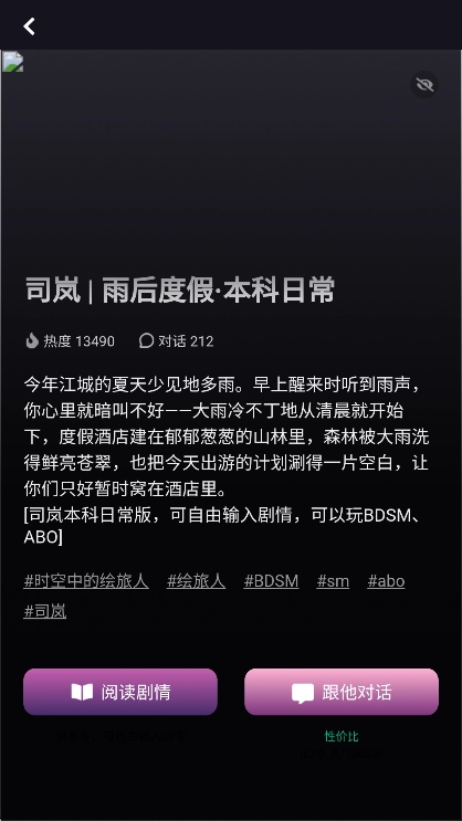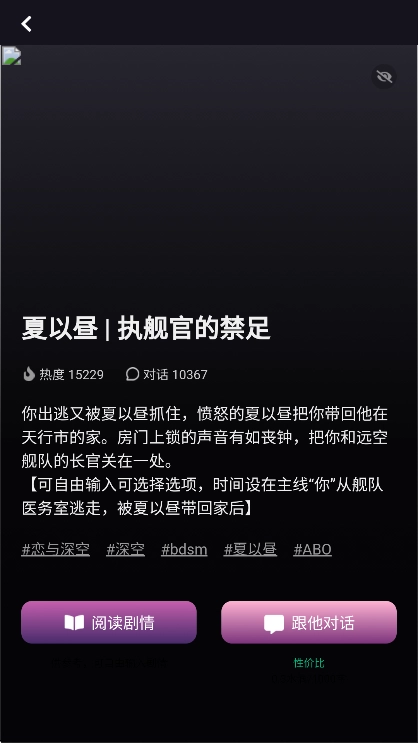 1、标签筛选不同题材、性格的 AI 角色,支持选项引导 + 自由输入双模式,不知如何推进剧情时系统会提供预设选项,开放式互动更灵活。