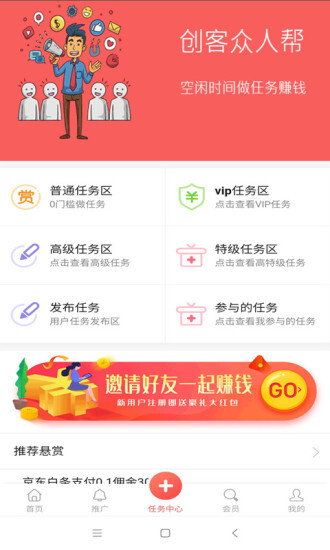创客众人帮是非常简单的,让你们可以自由来体验最新的任务,领取完成就可以获得对应收益,而且还可以邀请朋友一起参与,让闲暇时间更有价值,资源整合或者是兼职任务发布,经相关部门批准后方可开展经营活动)。