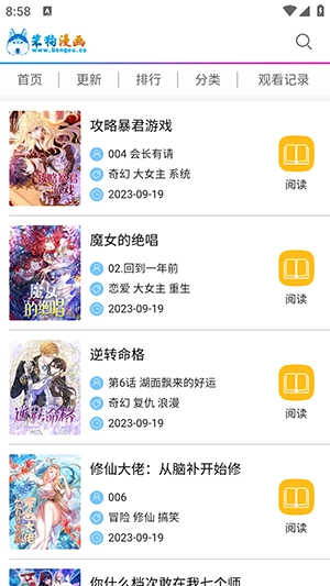 笨狗免费漫画是专为漫画爱好者打造的高品质阅读平台。汇聚海量正版资源,涵盖国产精品、日韩热门、欧美经典三大体系,所有漫画均为完整无删减版本;全程零广告干扰、零弹窗打扰,界面极简,加载流畅,真正实现沉浸式、高自由度的纯净阅读体验。