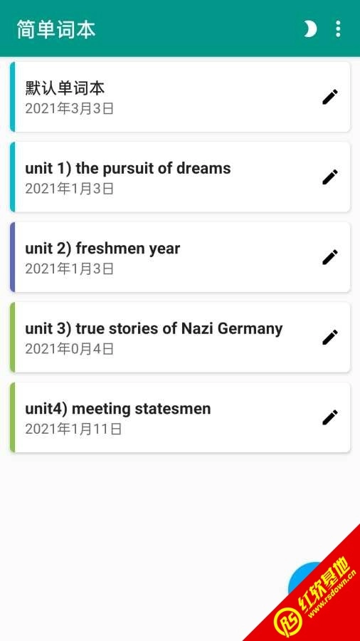 1、这是一款专为手机打造的单词记忆软件,拥有较高的自由度,并且支持单词书的导入与导出功能。