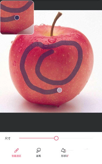 3、若图片背景是统一色调,建议选择【智能选区】模式,接着用手指在需抠取的物品上拖动以选定抠图范围,系统会自动以红色背景呈现所选区域。要是对效果不满意,可借助【橡皮】功能擦除无需保留的部分。