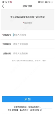 5、填写摄像头的序列号、宽带账号和设备名称,完成输入后点击添加按钮即可