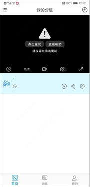 6、接着给摄像头接通电源和网络就能进行观看了,要是出现这个页面,点击“点击重试”按钮就可以了