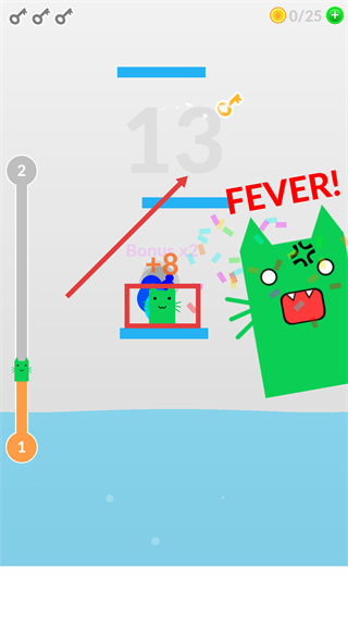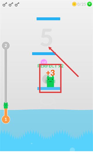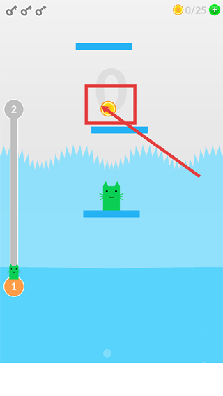 4、把目标对准上方红色框里的金币,操控小猫准确跳跃来收集它们,攒够足够的金币就能解锁更多游戏内容。