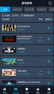 1、在首页界面能够查看免费游玩的游戏、游戏榜单、游戏折扣以及支持存档功能的游戏等内容。