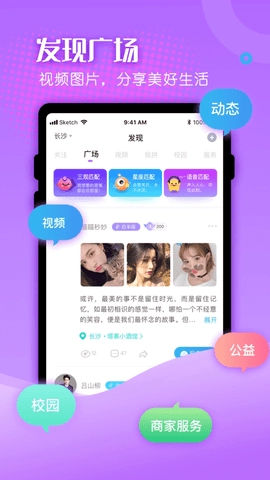 2、大家可以在发现广场分享自己的心情与生活,在线约聊有缘人,还能开启群聊和一群人畅快交流。