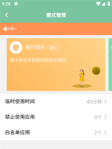 此模式适用于家长临时为孩子提供娱乐内容。
