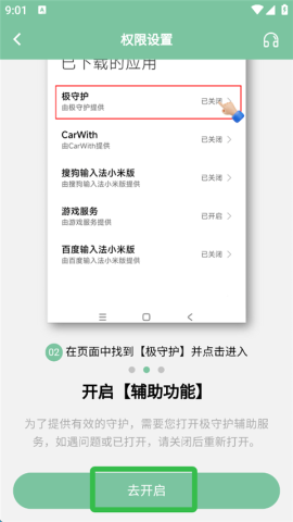 首先登录极守护App,点击开启守护功能。