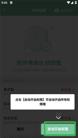 接着选择【自动开启权限】,完成权限的开启。