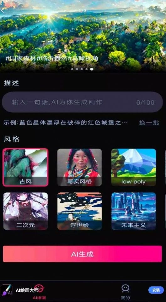 AI绘画大师免费版能让你在手机上轻松创作心仪的绘画作品,无需复杂操作,只需输入关键词和描述就能生成画作。AI自带学习功能,提供多种艺术风格与表现手法供选择,你创作的所有素材都能轻松分享,还能添加喜欢的内容进行修图,并且不占内存、支持各类手机设备使用!