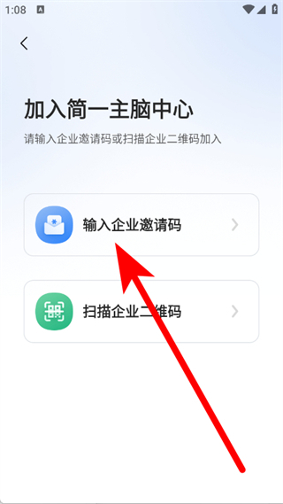 3、在加入企业页面,点击输入企业邀请码。